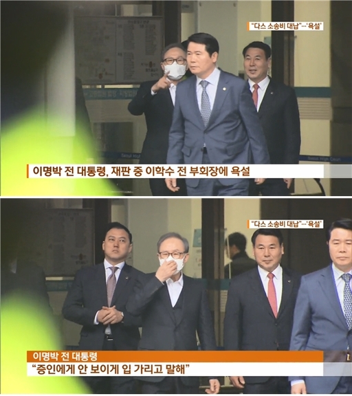 그러자 이 전 대통령은 “알겠다”며 “증인에게 안 보이게 입을 가리고 했다”고 해명.