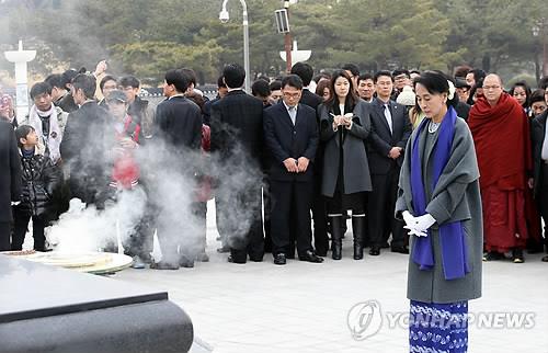 수치 고문은 1991년 받은 노벨평화상이 가택연금 당시 느끼던 소외감을 없애고 미얀마 민주화에 대한 세계의 요구를 재확인시켜준 계기가 됐다고 회고했다. 그녀는 2013년 1월에는 한국을 찾아 국립 5·18 민주묘지를 참배하고, 광주시로부터 명예시민증을 받았다.