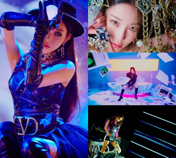 이번 뮤직비디오 스틸컷은 화려한 이미지로 강렬한 콘셉트를 표현, 청하의 매력적인 비주얼을 담아내 본편에 대한 기대감을 고조시킨다. 은색 바이크, 검은색 모자와 구슬, 각종 보석, 양갈래 머리 등 각각의 오브제가 청하만의 눈빛, 아우라와 합쳐져 시선을 사로잡는다.