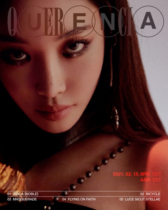 솔로 데뷔 4년 만에 선보이는 첫 번째 정규앨범인 만큼 청하는 이번 ‘Querencia’에 자신의 독보적인 스타일과 강점을 담아냈다. 총 21개 트랙은 ‘NOBLE (노블)’, ‘SAVAGE (세비지)’, ‘UNKNOWN (언노운)’, ‘PLEASURES (플레져스)’ 등 4개의 ‘SIDE’ 별로 분류돼 어느 때보다 다채로운 ‘듣는 재미’를 느낄 수 있다.