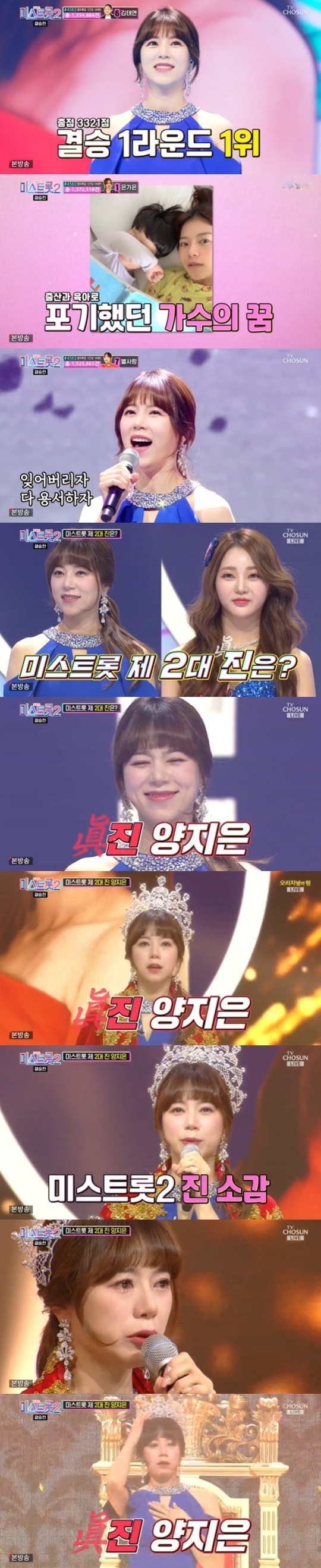 1라운드 총점 결과에 2라운드 마스터 총점과 실시간 문자 투표 점수가 반영된 최종 순위가 발표됐고, 양지은, 홍지윤, 김다현이 진·선·미를 차지했다. 김태연, 김의영, 별사랑, 은가은이 4위부터 7위를 기록했다. 양지은은 TV조선 트로트 경연 프로그램 '미스트롯 2'에서 최종 우승자가 되면서 시즌1 송가인에 이어 2대 '진'이 영광을 안게 됐다.