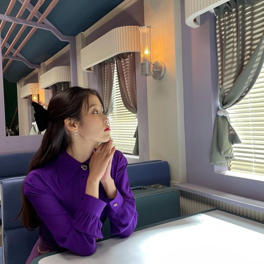 공개된 사진 속 아이유는 신곡 '라일락(LILAC)' 뮤직비디오 촬영 현장에서 보라색 블라우스를 입은 채, 다양한 포즈를 취하고 있다. 그는 한떨기 라일락 같은 청초한 분위기를 자아내며, 눈부신 미모를 뽐내 시선을 강탈하게 만들었다.