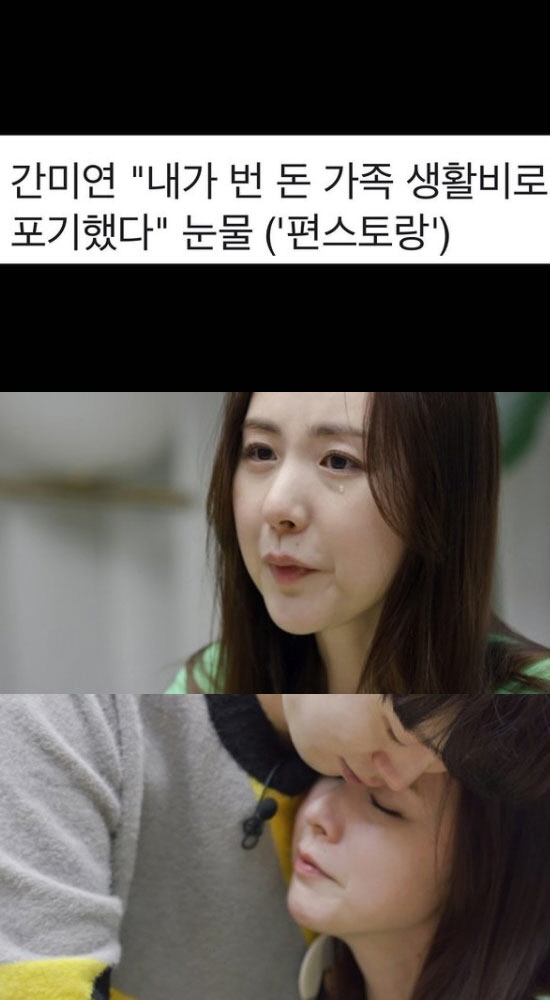 그런데 방송이 나간 후 간미연은 29일 오전 자신의 인스타그램에 한 기사 제목 문구가 담긴 사진 한 장과 함께 해명글을 게시했다. 공개한 사진 속에는 ‘간미연 “내가 번 돈 가족 생활비로, 포기했다” 눈물’이란 문구의 기사 제목이 담겨 있었다. 간미연은 해당 기사 제목에 대해 “아무래도 줄이다 보니 이렇게 기사가 많이 난 것 같다”고 운을 떼며 “저는 그 돈을 생활비로 써서 슬퍼서 운 게 아니다”고 해명했다.