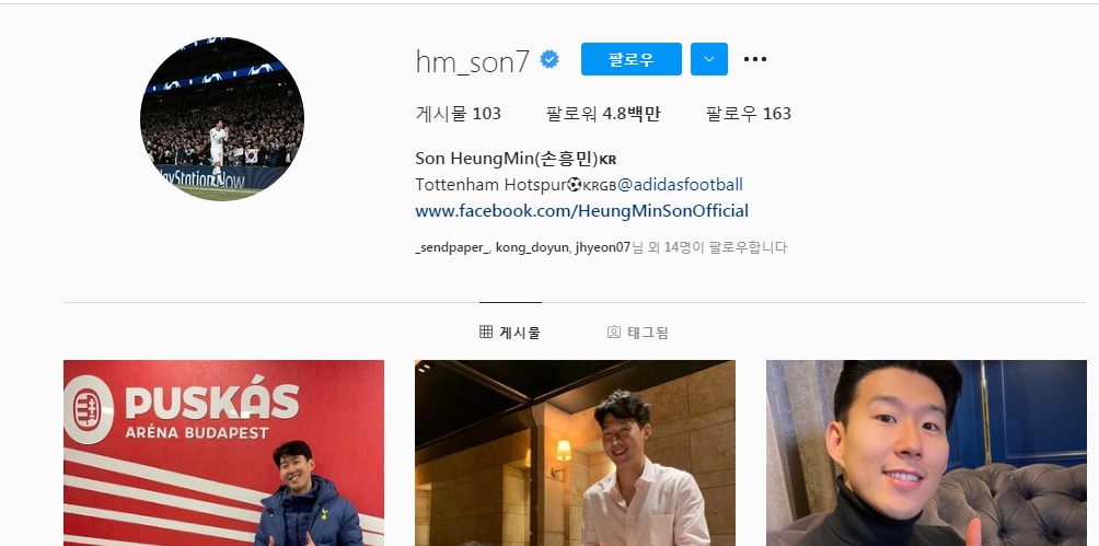 www.instagram.com/hm_son7/손흥민 선수 인스타그램 주소