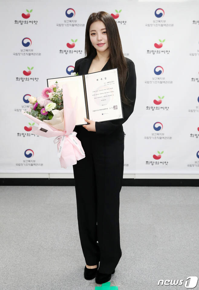 걸그룹 브레이브걸스가 1일 오전 서울 중구 후암로 서울시티타워에서 진행된 '제6대 희망의씨앗 생명나눔 홍보대사 위촉식'에서 포즈를 취하고 있다.그리고 국립장기조직혈액관리원 직원들과 기념촬영을 하고 있다.