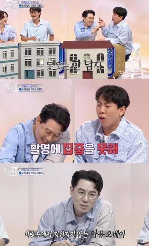 그런 가운데 장동민은 매물 영상을 보면서 '엄지발가락 사망존'이라고 농담했다. 모두가 웃을 때 붐은 '아유 오베이' 이름을 고심하는데 몰두했다. 양세찬은 "옆에서 아유 오베이만 신경쓰고 녹화에 집중을 하지 않는다"라고 폭로했다.