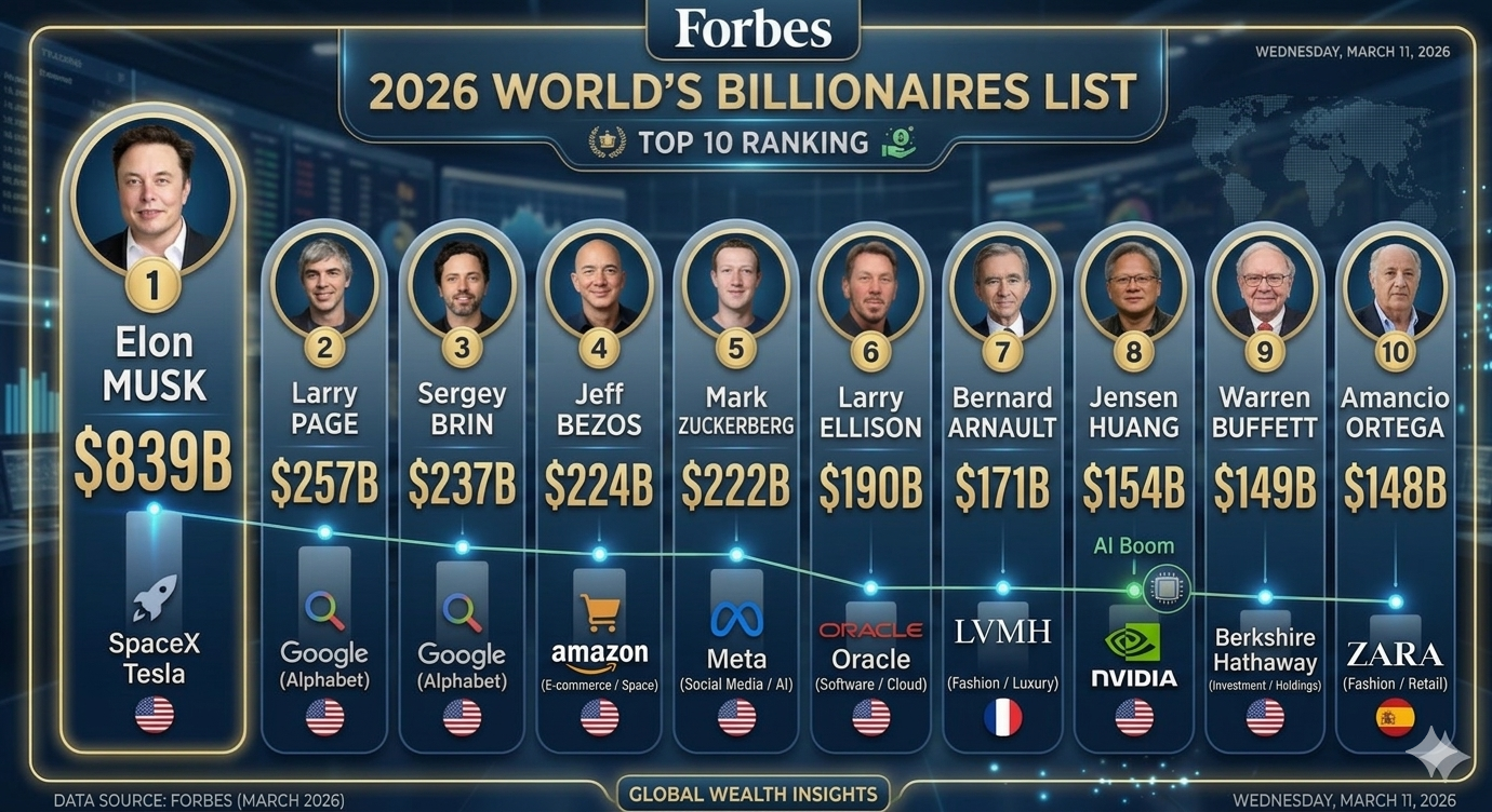 안녕하세요! 오늘은 전 세계 자산가들의 성적표라고 불리는 ‘2026 포브스 세계 억만장자 리스트(World’s Billionaires List)’ 발표 소식을 가져왔습니다.