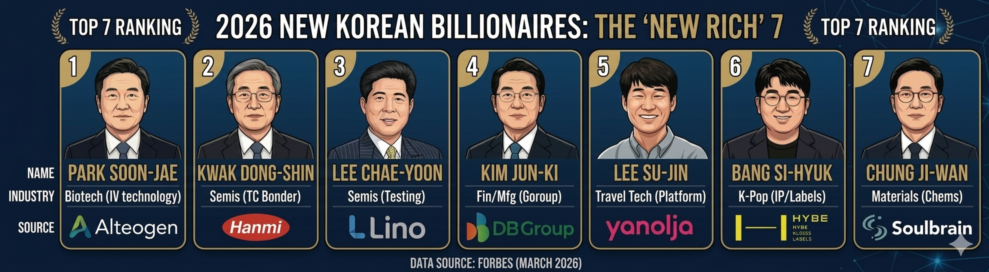 [뉴 리치] 2026년 새롭게 등재된 한국인 부호 7인